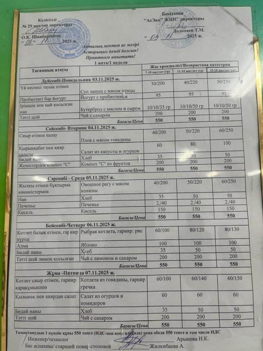 03.11-07.11.2025ж БІР АПТАЛЫҚ АС МӘЗІРІ.МЕНЮ » СШ №29