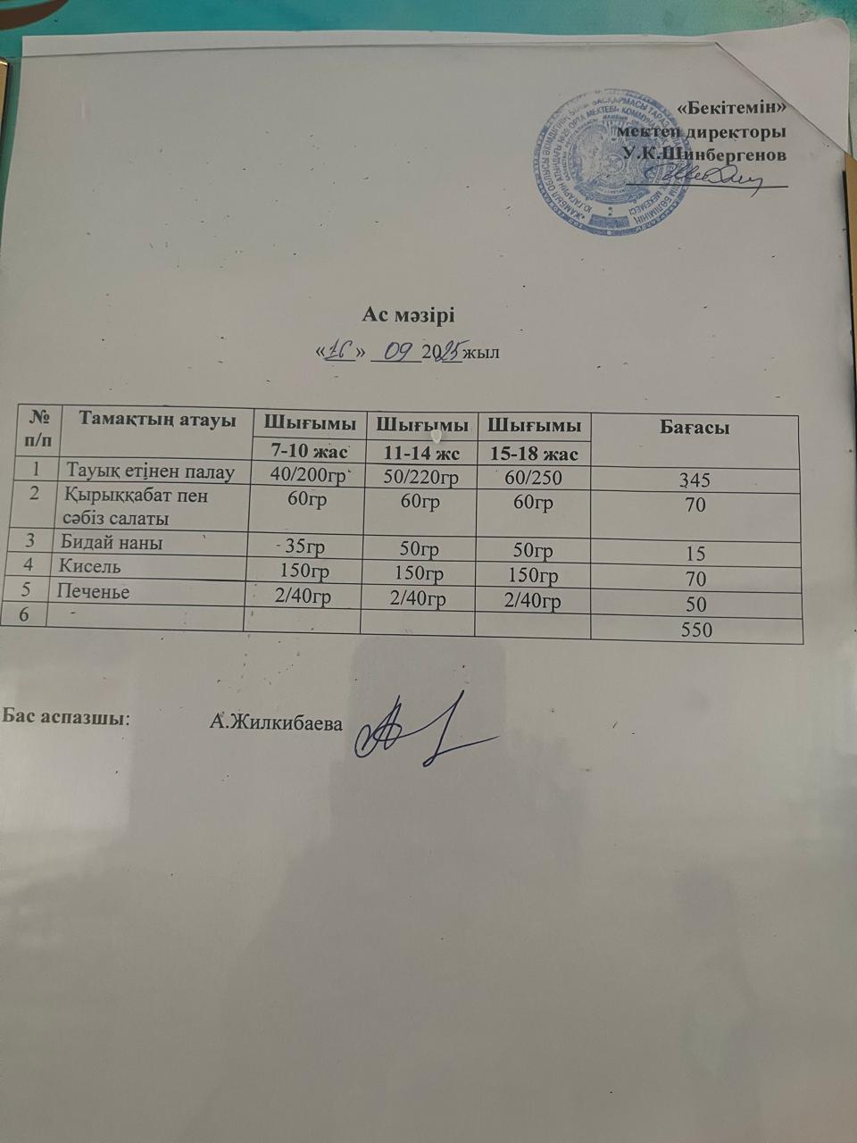 16.09.2025 БІР КҮНДІК АС МӘЗІРІ.МЕНЮ
