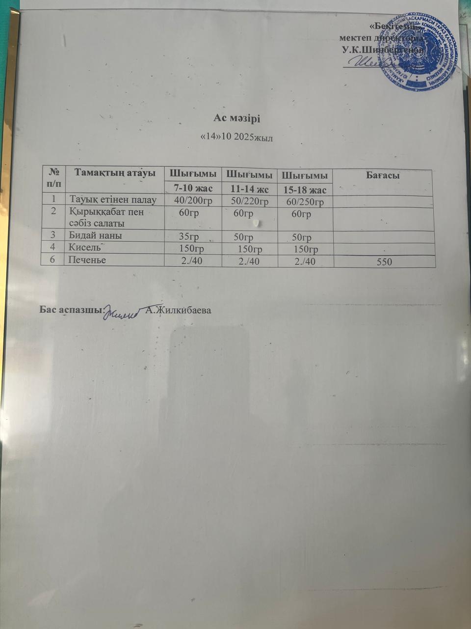 14.10.2025ж БІР АПТАЛЫҚ АС МӘЗІРІ.МЕНЮ
