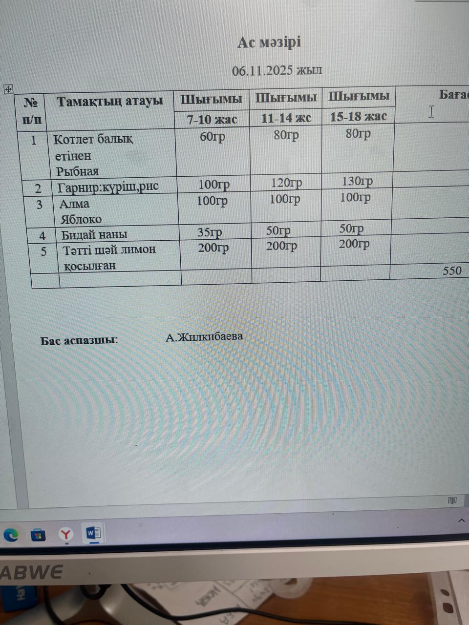 06.11.2025ж БІР АПТАЛЫҚ АС МӘЗІРІ.МЕНЮ