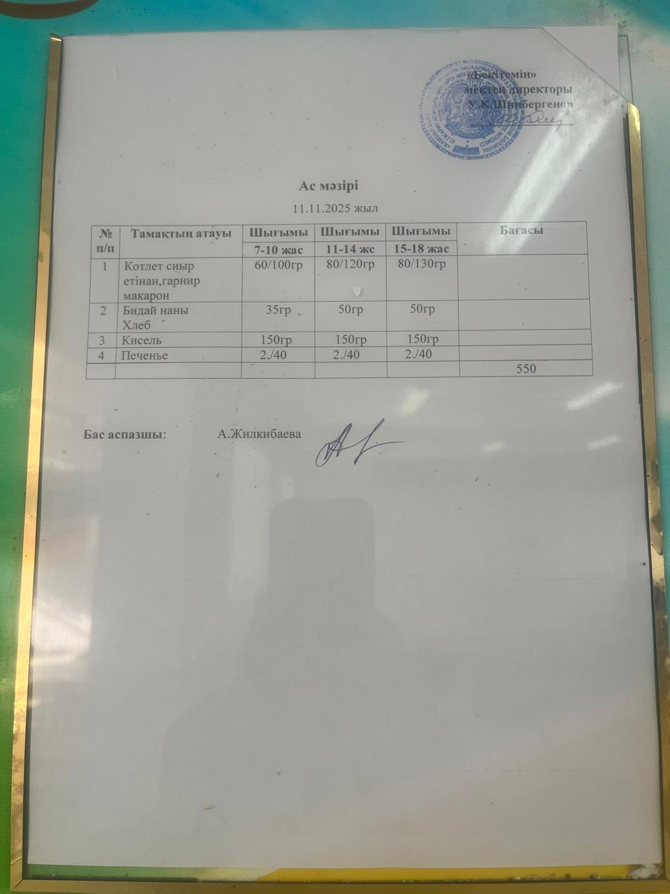 11.07.2025ж БІР АПТАЛЫҚ АС МӘЗІРІ.МЕНЮ » СШ №29