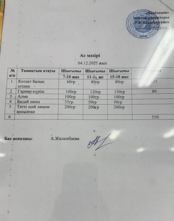 » » 4.12.2025ж. бір күндік ас мәзірі