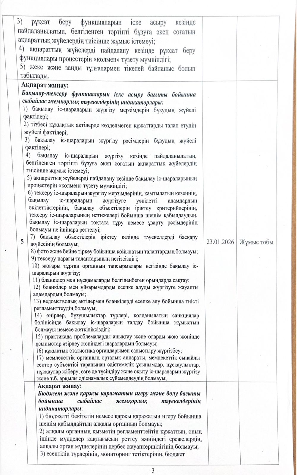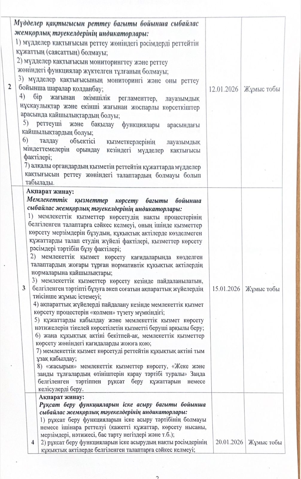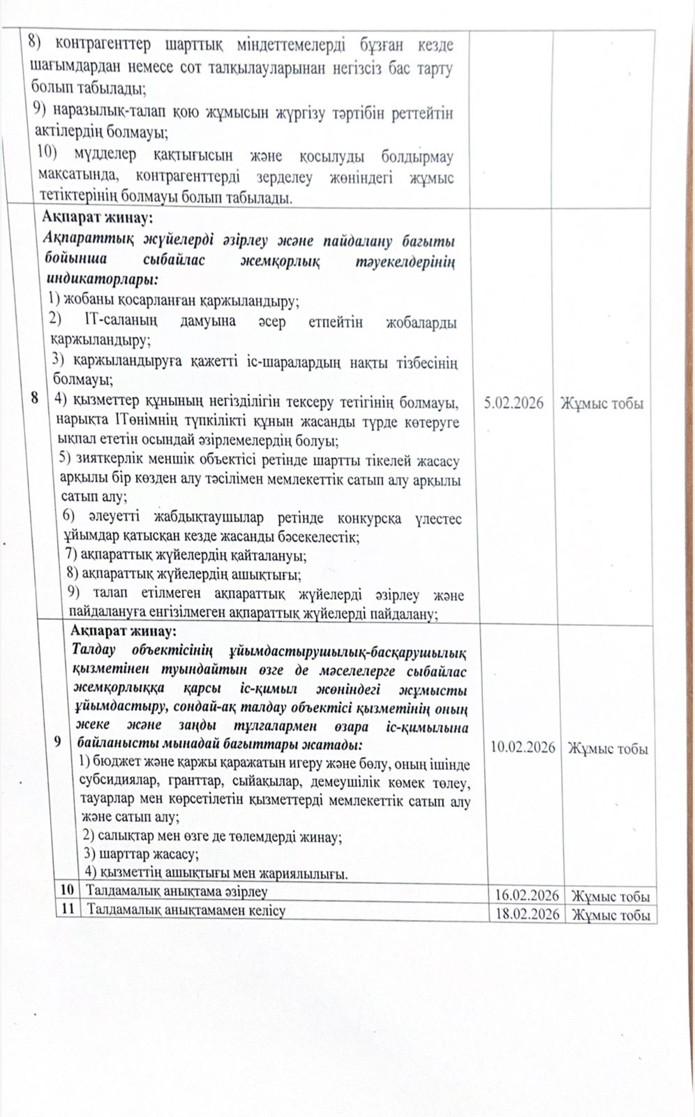 Сыбайлас жемқорлық тәуекелдеріне ішкі талдау жүргізу жөніндегі жұмыс жоспары