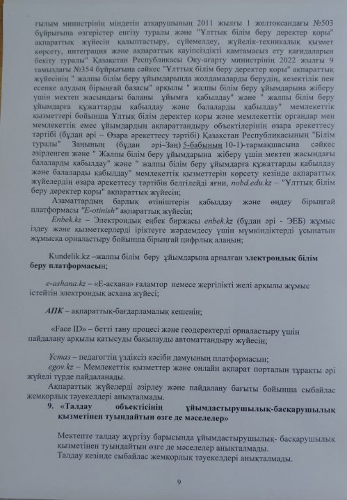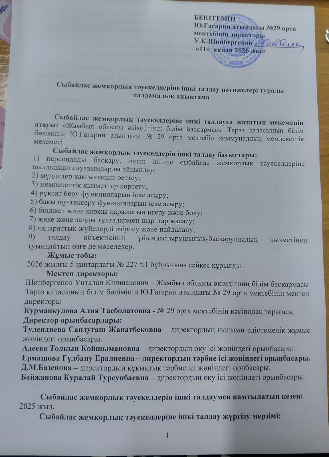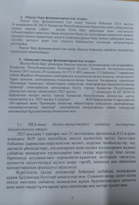 Сыбайлас жемқорлық тәуекелдеріне ішкі талдау нәтижелері туралы талдамалық анықтама » СШ №29