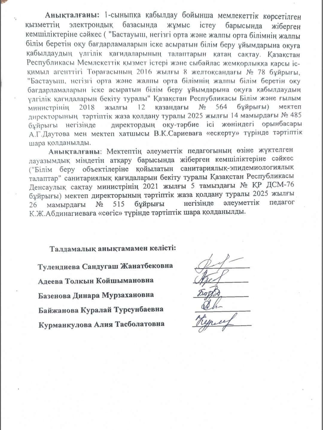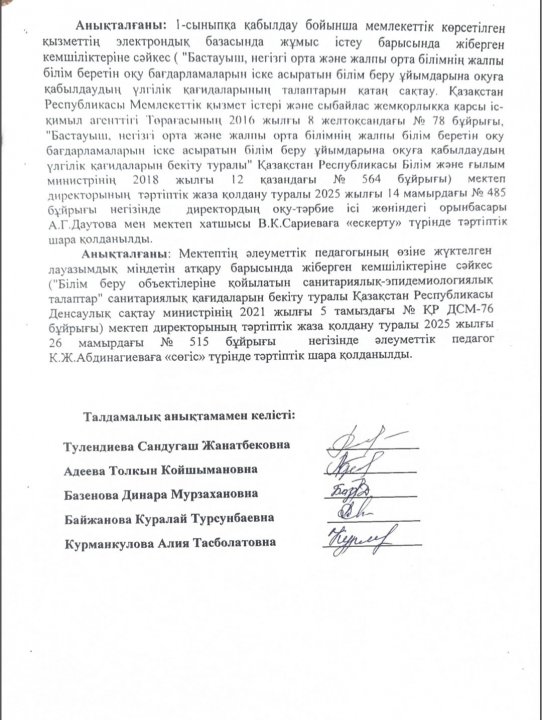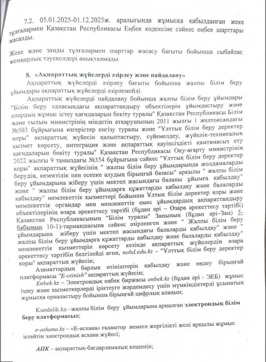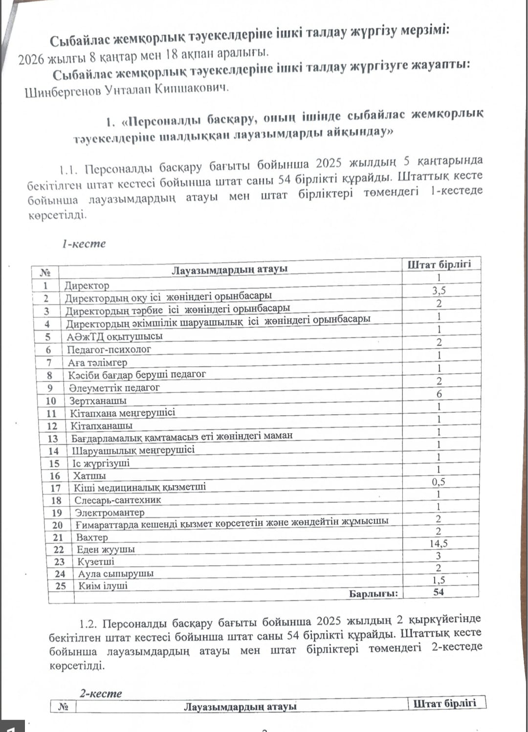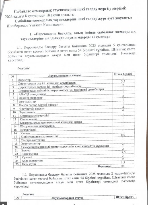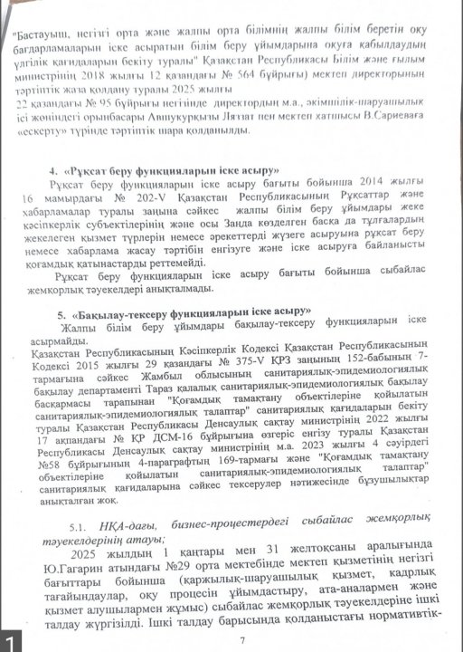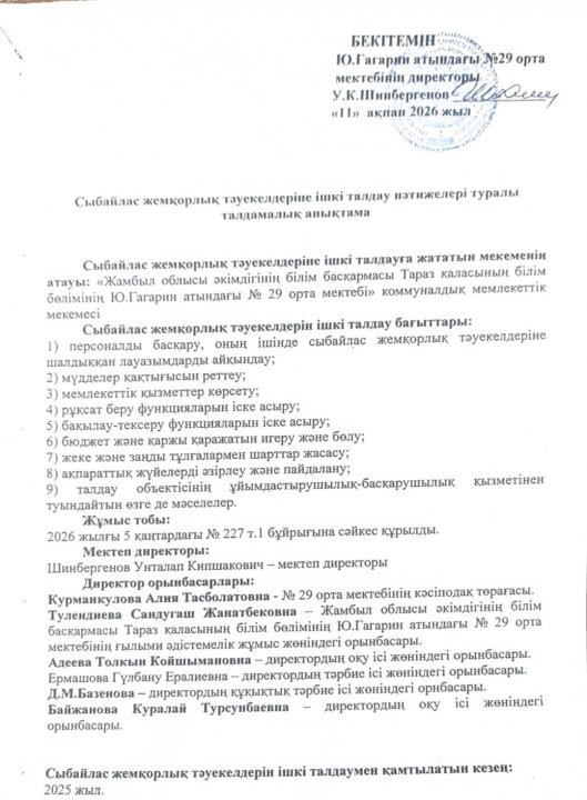 Сыбайлас жемқорлық тәуекелдеріне ішкі талдау нәтижелері туралы анықтама » СШ №29