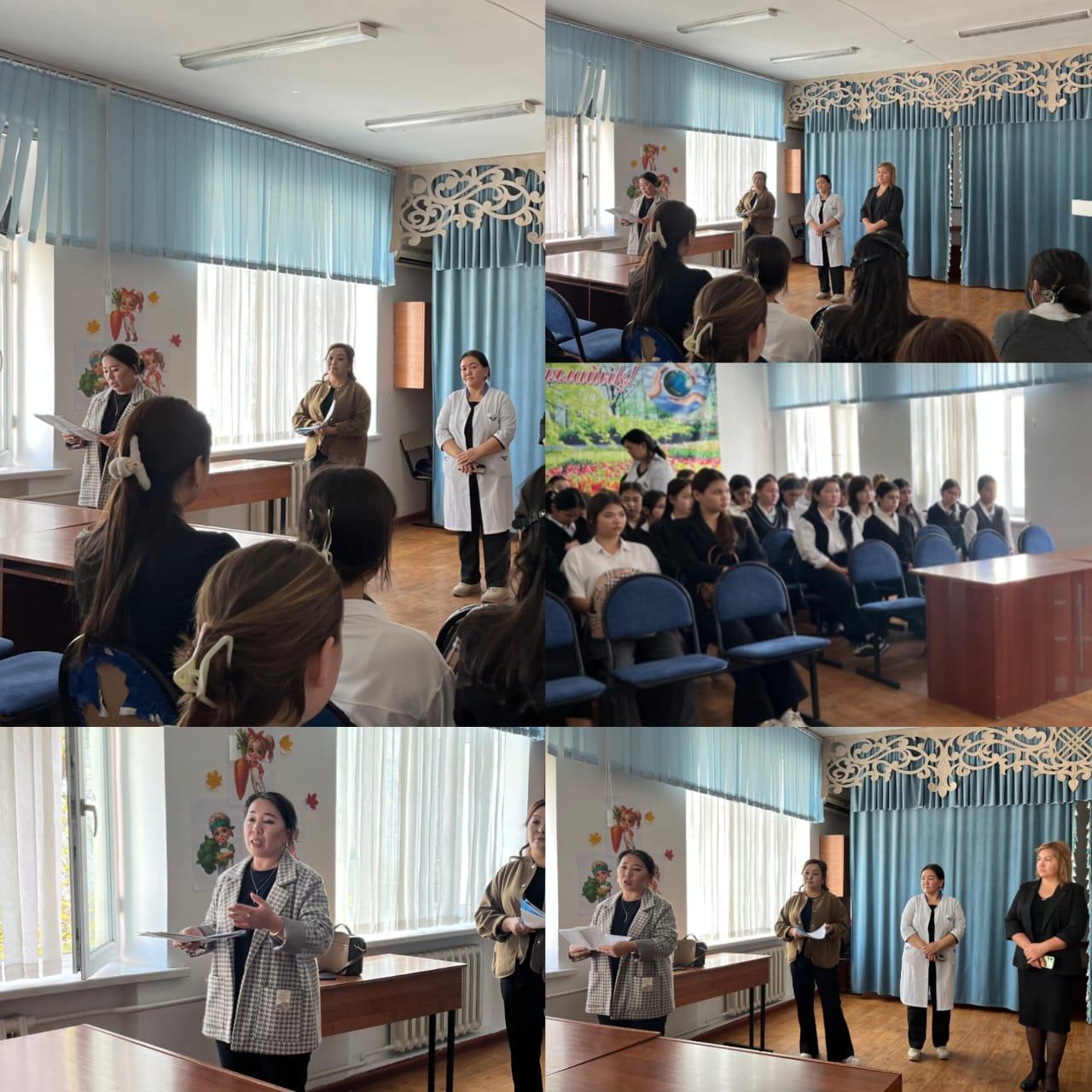 2025 жылдың 23 қазан күні ДҚТІЖО Д.М. Базенова, тәлімгер А.Ж. Назарханова, мектеп медбикесі А.У. Айдарованың қатысуымен √6 ҚЕ психологы Ж.Т. Сагилаева, СӨС медбикесі Н.Ш. Орынбаева және акушер Н.М. Ташжурекова 9–11 сынып қыз балаларына «Жасөспірімдер