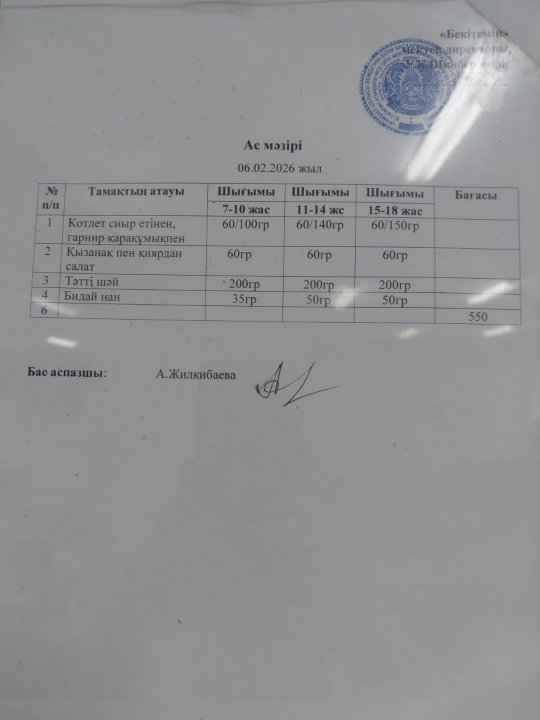 06.02.2026 ж БІР КҮНДІК АС МӘЗІРІ / МЕНЮ