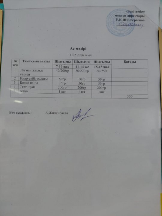 11.02.2026ж БІР КҮНДІК АС МӘЗІРІ.МЕНЮ