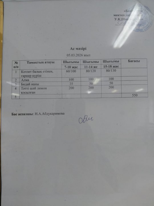 05.03.2026 ж. БІР КҮНДІК АС МӘЗІРІ / МЕНЮ